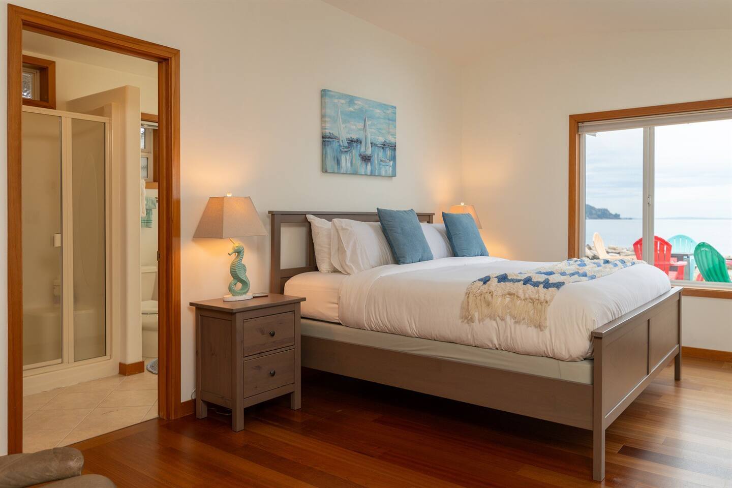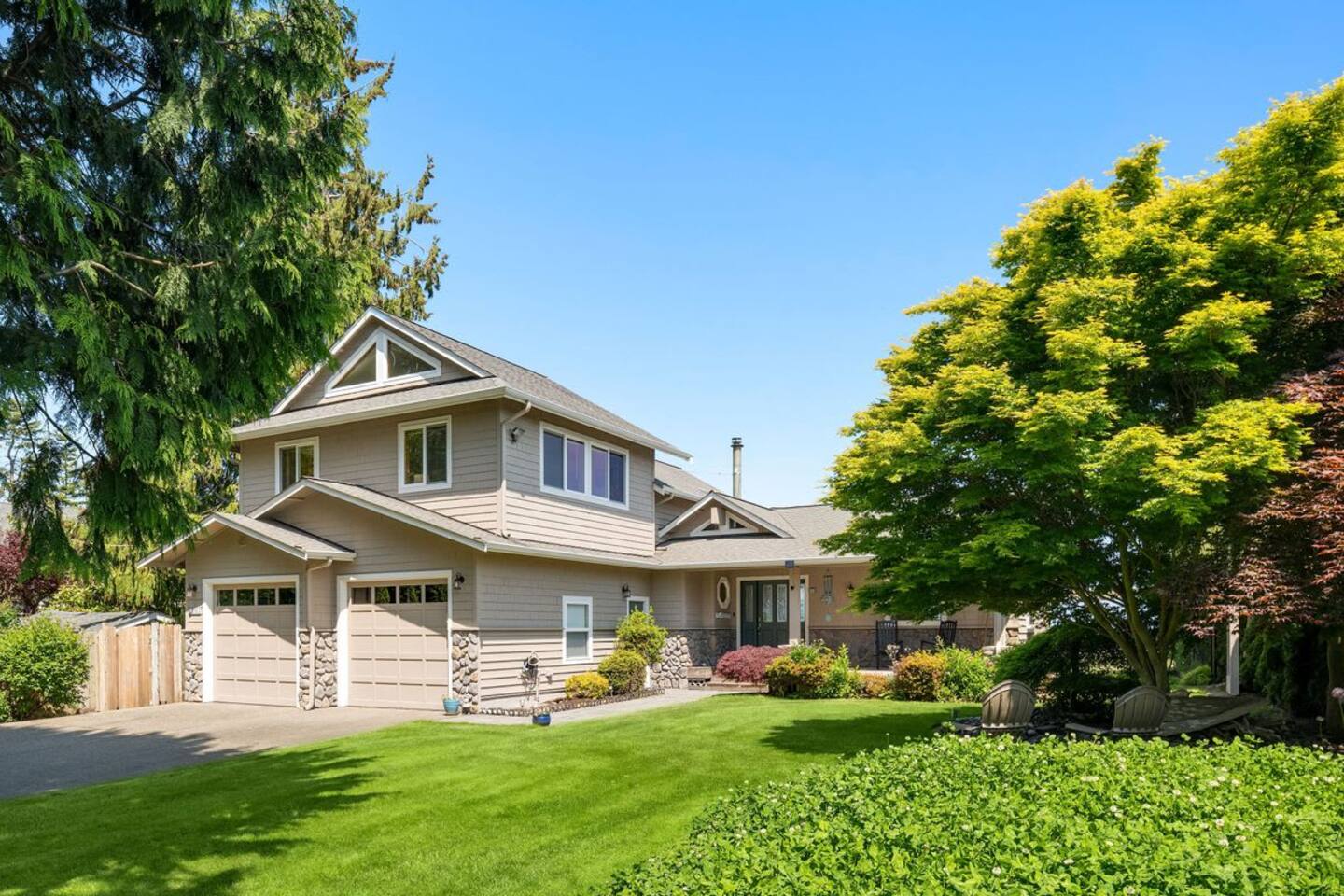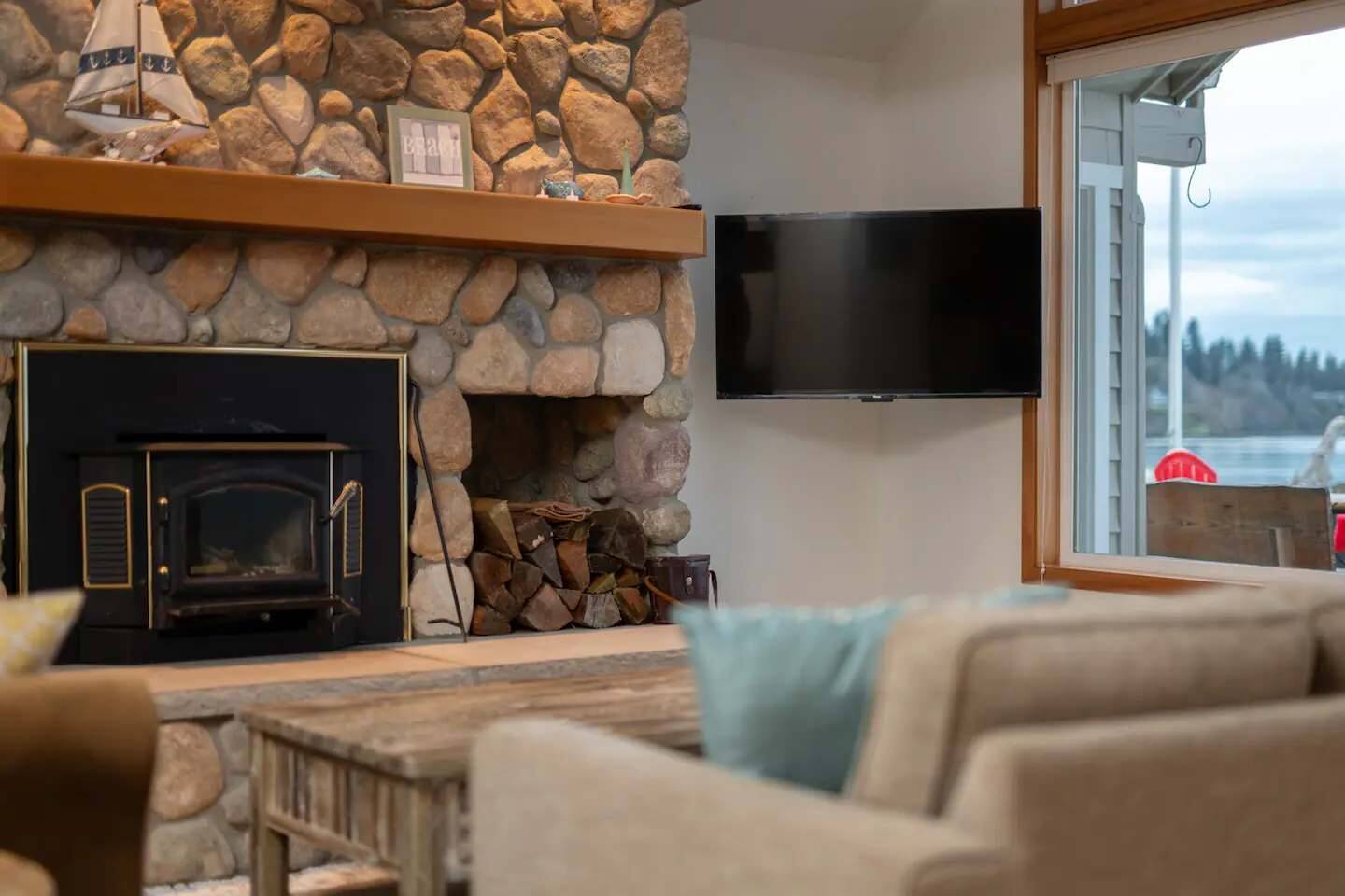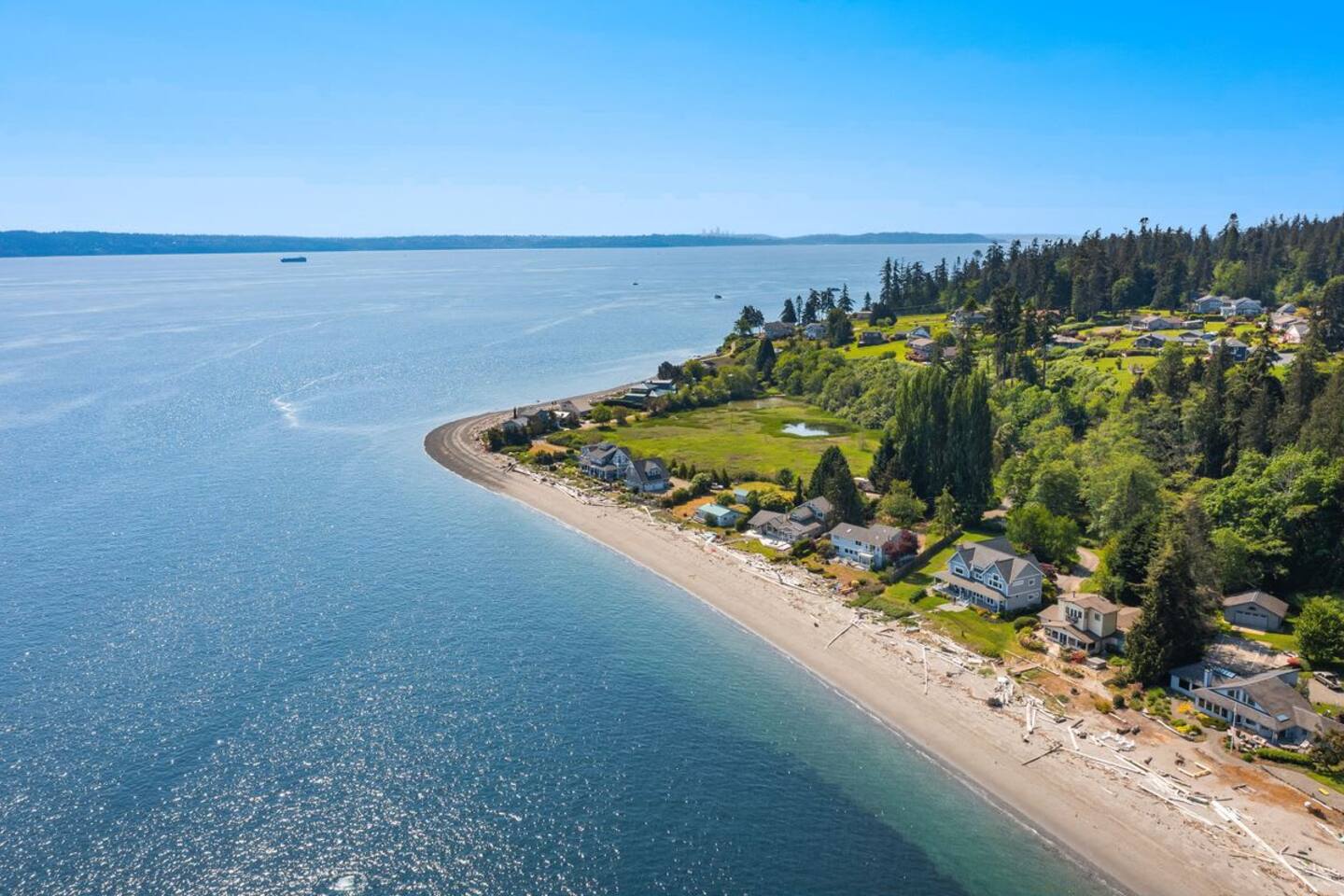 As you step onto Beach Cove's front porch, you'll be greeted by the soothing melodies of wind chimes, setting the stage for a serene coastal experience. Inside, the open common area welcomes you with soaring cathedral ceilings, creating a spacious and airy ambiance perfect for unwinding. ★ Living Room: Relax on plush sofas by the indoor wood fireplace, ideal for cozy evenings. ★ Kitchen: The fully equipped kitchen boasts sparkling granite countertops and sweeping views of Puget Sound. ★ Master Bedroom: Enjoy a king-sized bed with direct backyard access leading to breathtaking waterfront views. It also features a luxurious ensuite bathroom and jacuzzi with Sound vistas. ★ Second Bedroom: A queen-sized bed on the main level ensures comfort for large families or groups of friends. ★ Loft: Venture upstairs and discover a versatile space with two double beds, perfect for activities, work, or quiet contemplation, offering expansive water views. ★ Outdoor Amenities - Dog-Friendly: A designated dog run area on the side of the house. - Fire Pit: Gather around the gas fire pit in the backyard for warmth and camaraderie. - Beach Access: Direct launch for two kayaks and two paddleboards provided for your use. Whether you're seeking a romantic getaway or a family retreat, Beach Cove promises an unforgettable experience where cherished memories are made against the backdrop of the Puget Sound. Book your stay now and let Beach Cove become your sanctuary by the sea. NOTE: Beach fires are prohibited on the premises. No smoking is allowed in the home or on the property, this includes vaping and e-cigarettes.