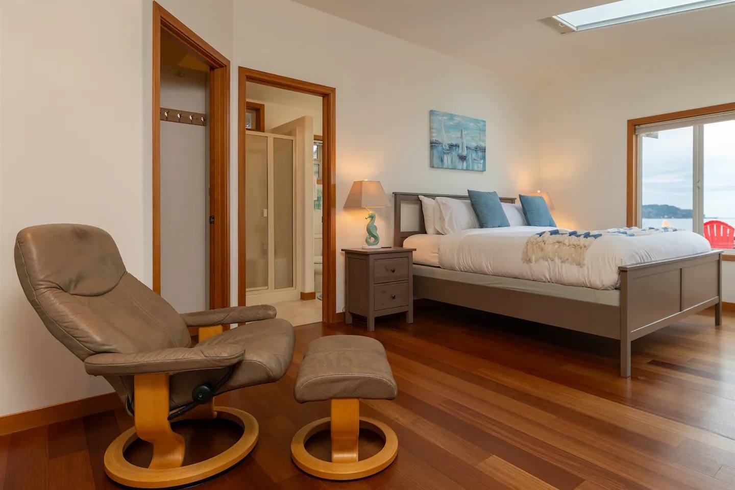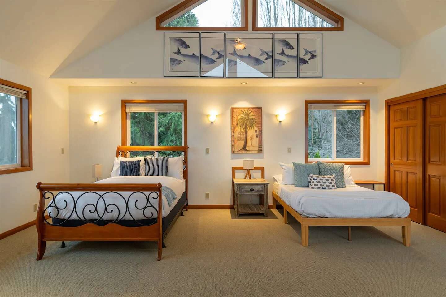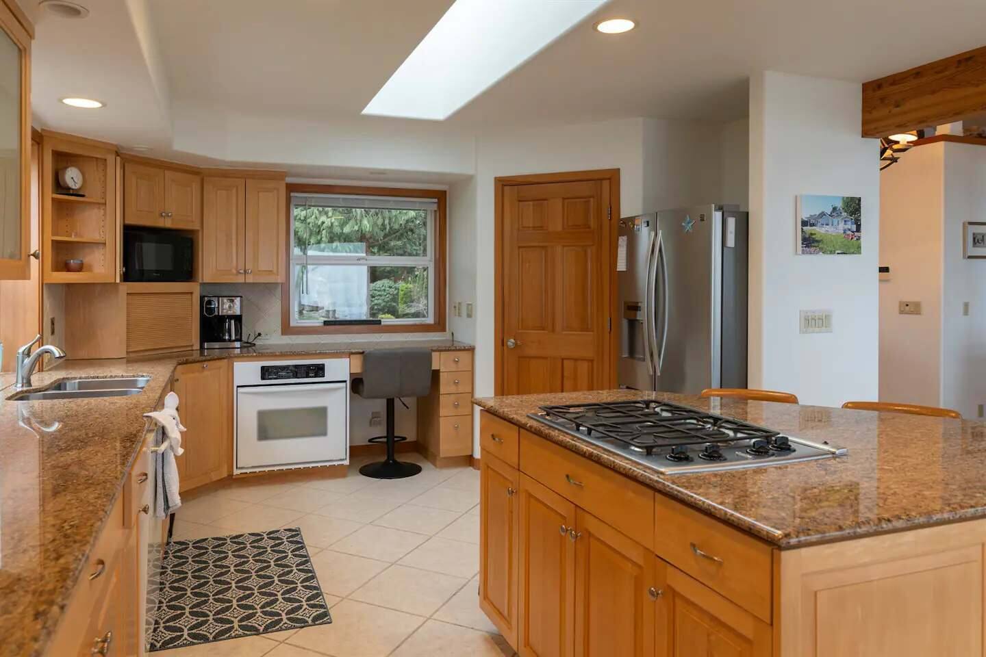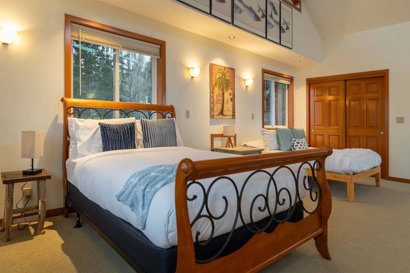 As you step onto Beach Cove's front porch, you'll be greeted by the soothing melodies of wind chimes, setting the stage for a serene coastal experience. Inside, the open common area welcomes you with soaring cathedral ceilings, creating a spacious and airy ambiance perfect for unwinding. ★ Living Room: Relax on plush sofas by the indoor wood fireplace, ideal for cozy evenings. ★ Kitchen: The fully equipped kitchen boasts sparkling granite countertops and sweeping views of Puget Sound. ★ Master Bedroom: Enjoy a king-sized bed with direct backyard access leading to breathtaking waterfront views. It also features a luxurious ensuite bathroom and jacuzzi with Sound vistas. ★ Second Bedroom: A queen-sized bed on the main level ensures comfort for large families or groups of friends. ★ Loft: Venture upstairs and discover a versatile space with two double beds, perfect for activities, work, or quiet contemplation, offering expansive water views. ★ Outdoor Amenities - Dog-Friendly: A designated dog run area on the side of the house. - Fire Pit: Gather around the gas fire pit in the backyard for warmth and camaraderie. - Beach Access: Direct launch for two kayaks and two paddleboards provided for your use. Whether you're seeking a romantic getaway or a family retreat, Beach Cove promises an unforgettable experience where cherished memories are made against the backdrop of the Puget Sound. Book your stay now and let Beach Cove become your sanctuary by the sea. NOTE: Beach fires are prohibited on the premises. No smoking is allowed in the home or on the property, this includes vaping and e-cigarettes.