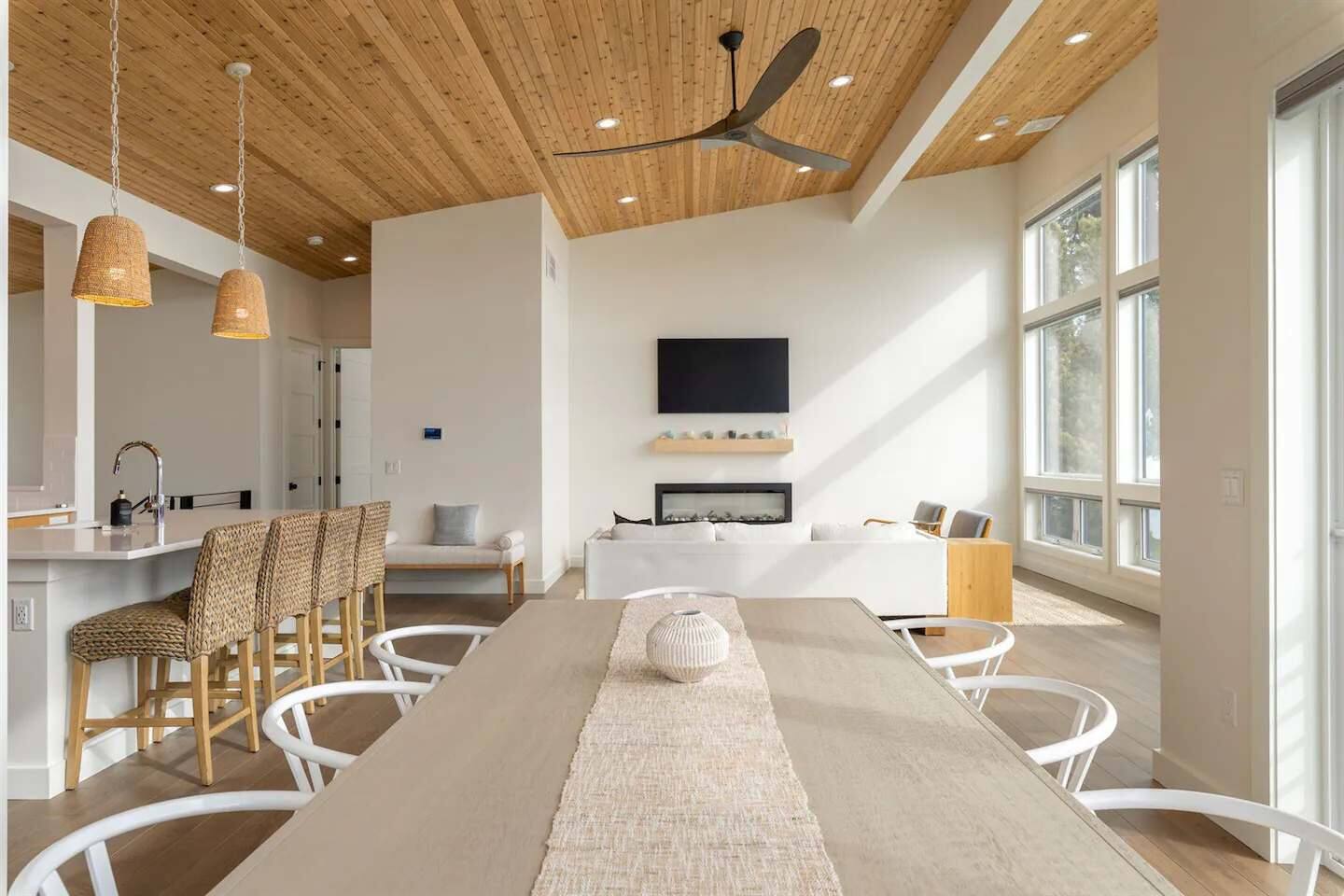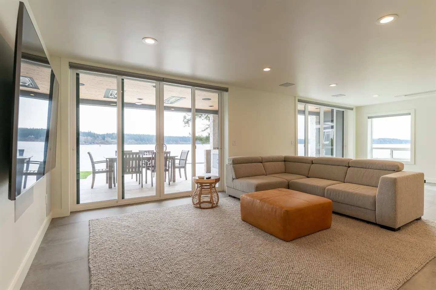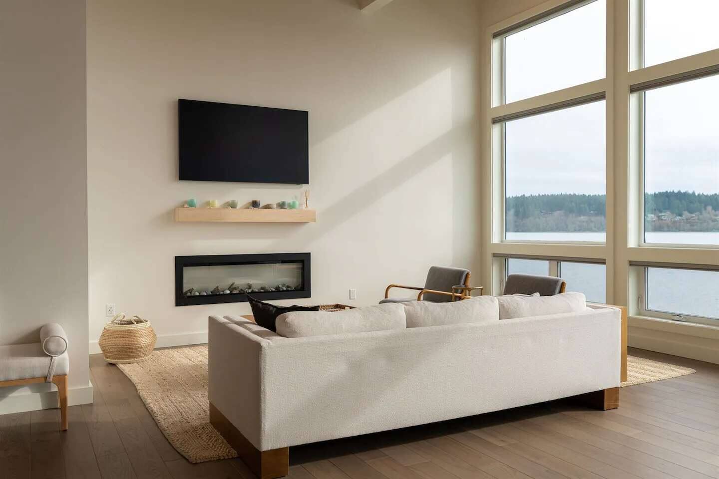 The Royal Beacon is a contemporary waterfront sanctuary and the perfect blend of sleek design and modern comfort. Each element of this oasis is meticulously designed to offer both luxury and tranquility. The home's spacious common areas, electric fireplaces, and expansive windows provide ample natural light and panoramic views of the Puget Sound making it the perfect getaway.