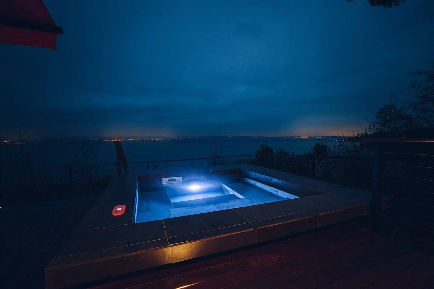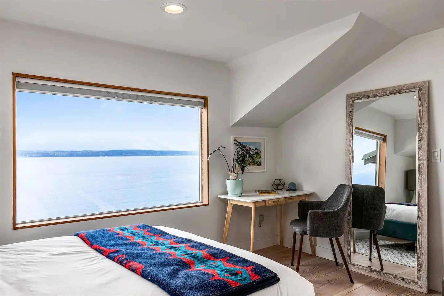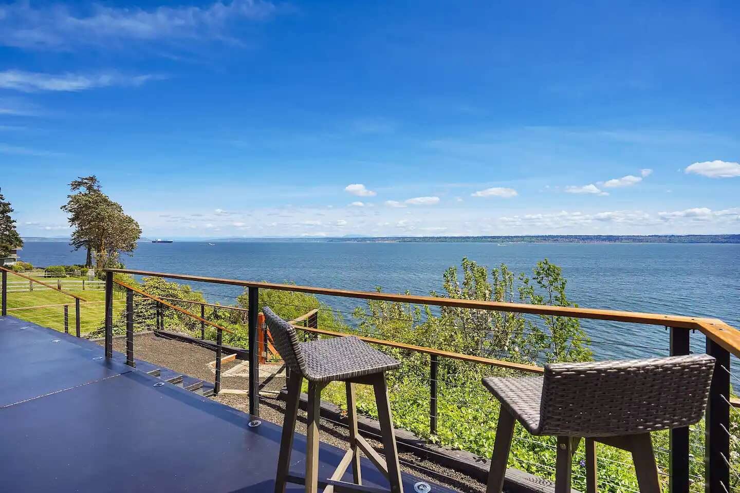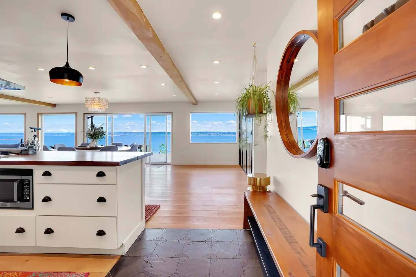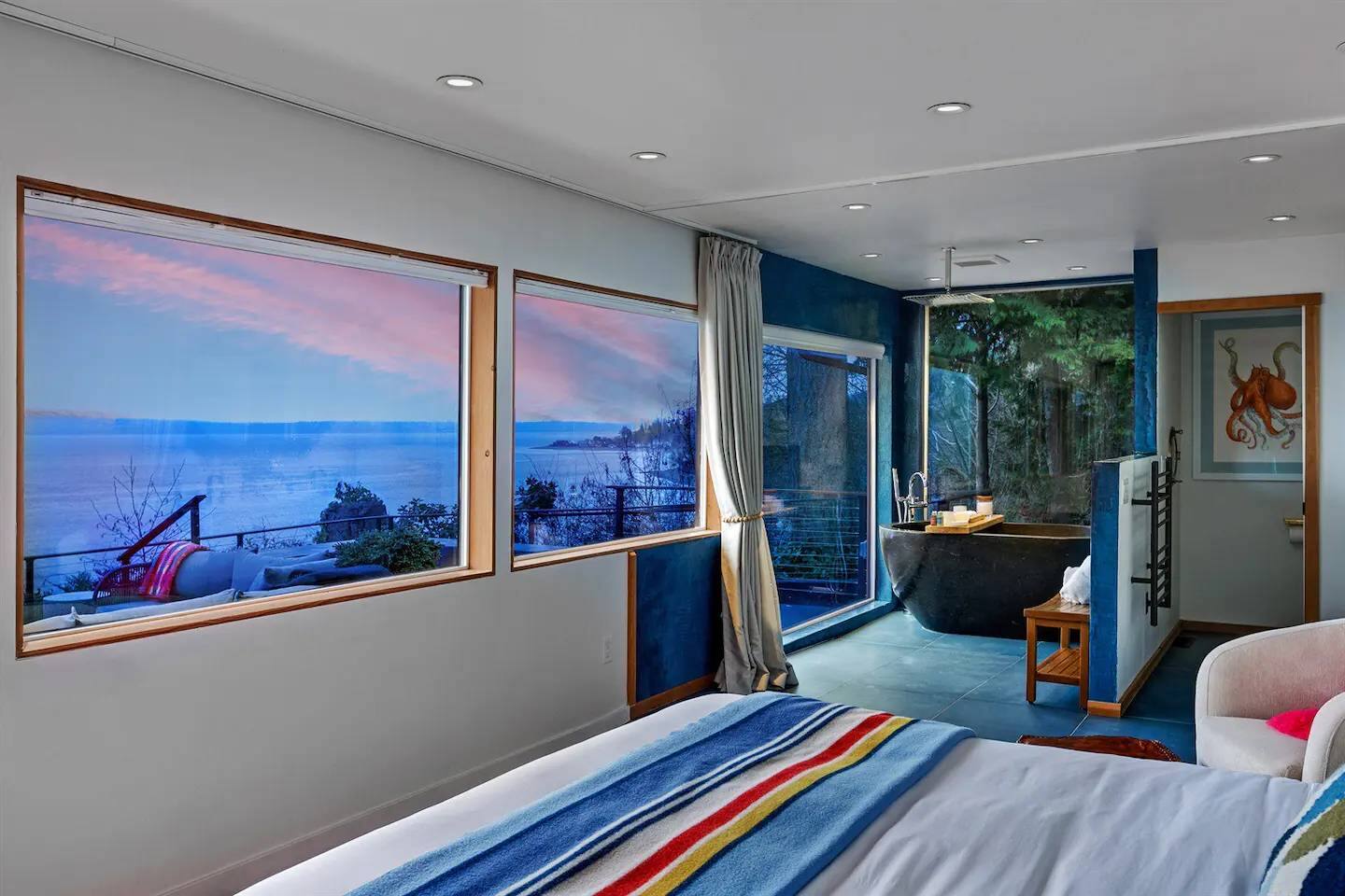☀ 4 exquisitely-designed bedrooms, each with a unique vibe, ocean views, and outfitted with luxurious linens ☀ Spa-like bathrooms: open-air, curb-less, rain showerheads, radiant floor heating, premium toiletries, robes and slippers, towel warmers ☀ 6-person JAPANESE SOAKING TUB with a blazing 200btu fire pit, and an extensive variety of outdoor lounge areas ☀ EXTENDABLE AWNING on the patio so you can enjoy the outdoors even when it's raining ☀ Fully-equipped kitchen with gas stove, propane BBQ grill, serving trays, and breakfast items provided ☀ PRIVATE BEACH AREA with a picnic table and direct access to the water ☀ Weekly, local, fresh flower service with fresh flowers provided throughout the home ☀ CONCIERGE : How can we make it special for your group? Boat rentals, float plane experiences, paddleboards, Chefs, Masseuse and more! SaltWood Bluff offers a vacation experience you'll never forget. This one-of-a-kind property immerses you into the rich history and culture of the Pacific Northwest. With large windows, skylights, and lots of open air, the 2,200 sq. ft. home is designed to maximize your enjoyment of the beautiful surrounding nature. Lose yourself in the breathtaking views of the Seattle skyline, Mt Rainier, Mt Baker, the Cascades, and stay entertained all day watching boat traffic, bald eagles, osprey, seals, otters, whales and so much more. If you're headed to Olympic National Park, this is the perfect home to come back to after a long day's journey into the wilderness. Calling all BIRDERS! This location is a special treat that offers vibrant birdlife right outside the back door. Kitsap county, in particular, is a birdwatcher's paradise with the likes of bald eagles, Anna's hummingbird, dark-eyed junco, great blue heron and much more whizzing right by the bluffs of the Puget Sound. Grab some binoculars and don't miss your chance to witness this thrilling sight! Some kind words from past guests... "...a bona fide treat to spend time and bask in the incredible beauty there..." "...The love and care that was poured into the home is palpable..." "...even better in person than the photos..." ☆☆ BATHROOMS ☆☆ ☀ Towel warmers and Heated floors ☀ Deep soaking tub ☀ Curbless showers ☀ Premium towels and toiletries ☀ Rainshower, handhelds, and shower jets The master bedroom features an open-air bathroom that blurs the lines between indoor and outdoor living. The space is equipped with a giant overhead rain shower, handheld jet, a custom-made marble tub, and towel warmer. No matter where you stand, you’re surrounded by tranquil blue walls and expansive windows so you can see the Puget Sound. The open bathroom in the PNW room features a sleek black vanity, marbled floors and walls, and an overhead shower with horizontal shower jets. The third bathroom ensuite is shared, featuring white subway tile, modern shower features, a towel warmer, and fresh eucalyptus so you feel like you’re at the spa. ☆☆ KITCHEN & DINING ☆☆ ☀ Fully-equipped kitchen ☀ 5-burner gas stove & 2 ovens ☀ Serving trays and utensils for the whole family ☀ Coffee, tea, eggs, and pancakes provided ☀ Complimentary grocery delivery service The gourmet kitchen is a chef’s dream, mixing modern design and retro style with all-natural woods, chrome, and stainless steel. Prepare homemade meals in the open-concept kitchen while still interacting with friends and family throughout the home. As with every other room in the house, you won’t miss any action on the water while cooking or doing the dishes, as the floor-to-ceiling glass doors let you see the Sound no matter where you’re standing. You’ll find state-of-the-art appliances, kitchen gadgets, a 6qt Instant Pot, nonstick ceramic pots and pans, silverware, glassware, and anything else you’d ever need to whip up a decadent meal for the whole group. You’ll also find a premium coffee and tea bar, farm-fresh local eggs, and pancake mix so you’ve got breakfast covered. Enjoy your meals at the elevated breakfast bar made of Sapele wood, or at the 10-seater round dining table with a lazy Susan. ☆☆ FAMILY ROOM & LIVING AREA ☆☆ ☀ 65" Smart TV with high-speed wi-fi ☀ Soft, heated, electric blankets ☀ Genuine leather sofa and sheepskin rugs ☀ Telescope and Binoculars for birdwatching and marine life ☀ Enormous windows and sliding doors to enjoy the sight and smell of the Puget Sound The main living room which overlooks the water is a calming blend of serenity and amazement. Settle into the cozy couches or relax on the cotton poof tucked under the windows. Sink your feet into the plush sheepskin carpets and keep your gaze out the window so you don’t miss a moment of the action. Modern decor and unbeatable views make this a prime place to unwind. ☆☆ OUTSIDE SPACE ☆☆ ☀ Weber propane BBQ grill, gas provided ☀ Custom-built hot tub with capacity for up to 6 people ☀ Custom-built firepit with 200,000 BTUs to keep you warm ☀ A variety of seating options including 4 chaise lounge chairs for sunbathing ☀ Kayak & Stand-up paddleboard launch The living room has a 65" Smart TV, but chances are you won’t even notice when you see all that the elegant outdoors has to offer. The back of the house faces east and contains 10 pieces of 4'x4' glass. Brew some coffee and enjoy brunch on deck during sunrise! This space has two separate outdoor sectionals, a fire pit, and an incredible hot tub overlooking the water. Bring a good book out to the back and relax in one of the chaise lounges, or use the telescope to look for birds and wildlife. Follow the walkway and staircase down to the private beach to go kayaking, paddle board, search for clams, or a simple morning stroll on the sandy shores of Kingston. ★☆ Send us a message to book your one-of-a-kind experience in Kingston, Washington! ☆★