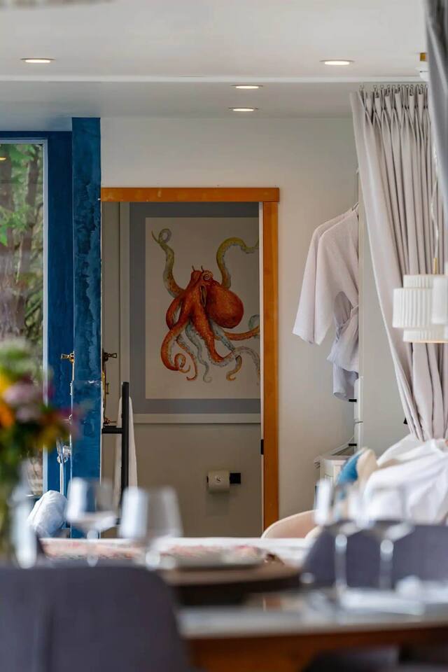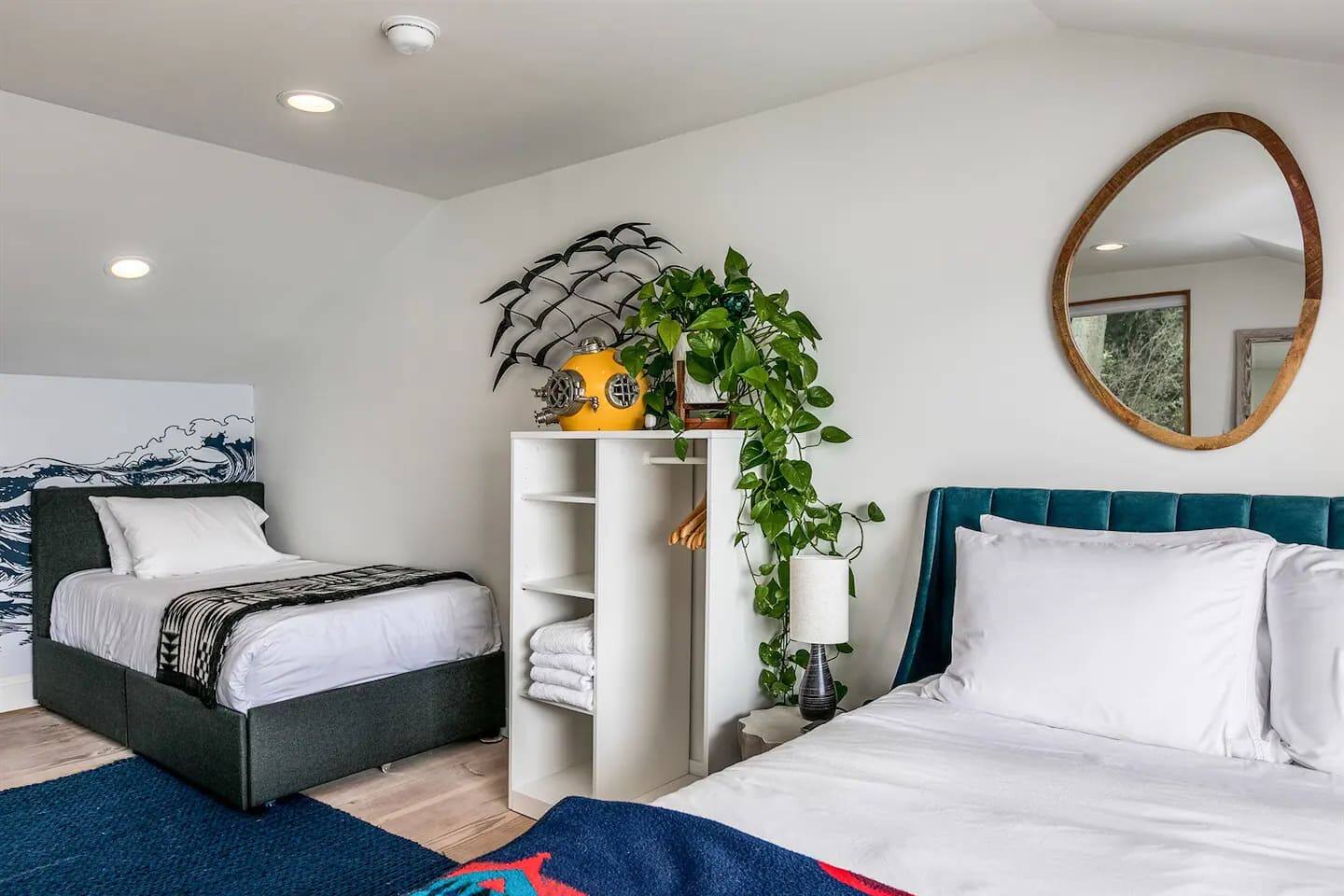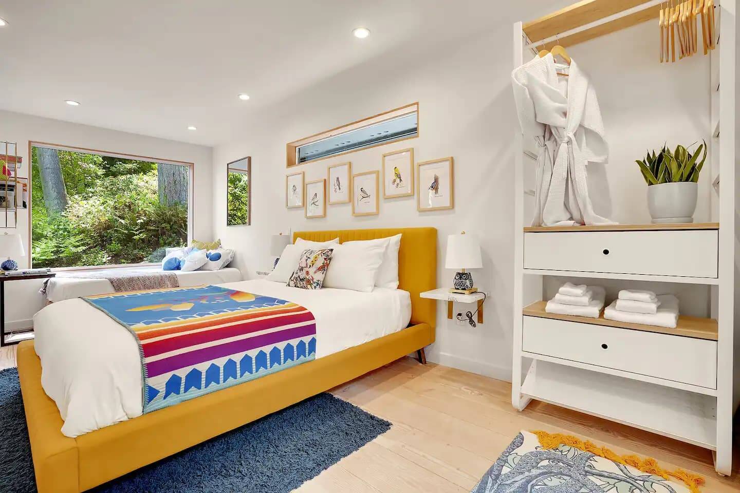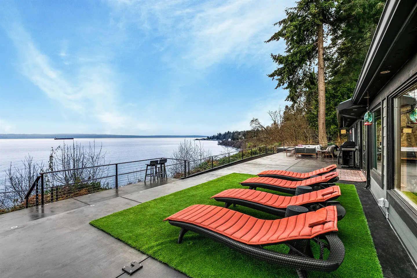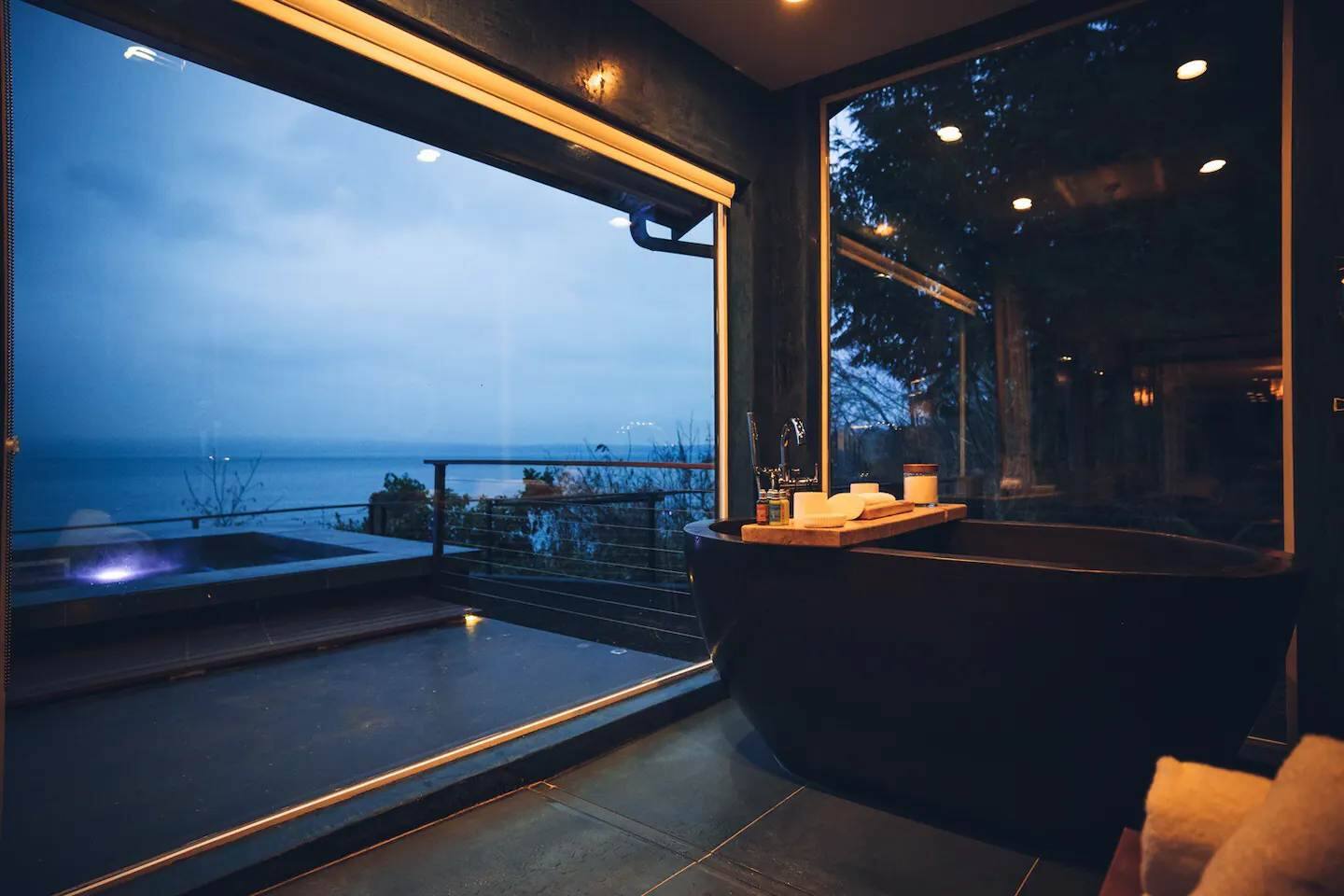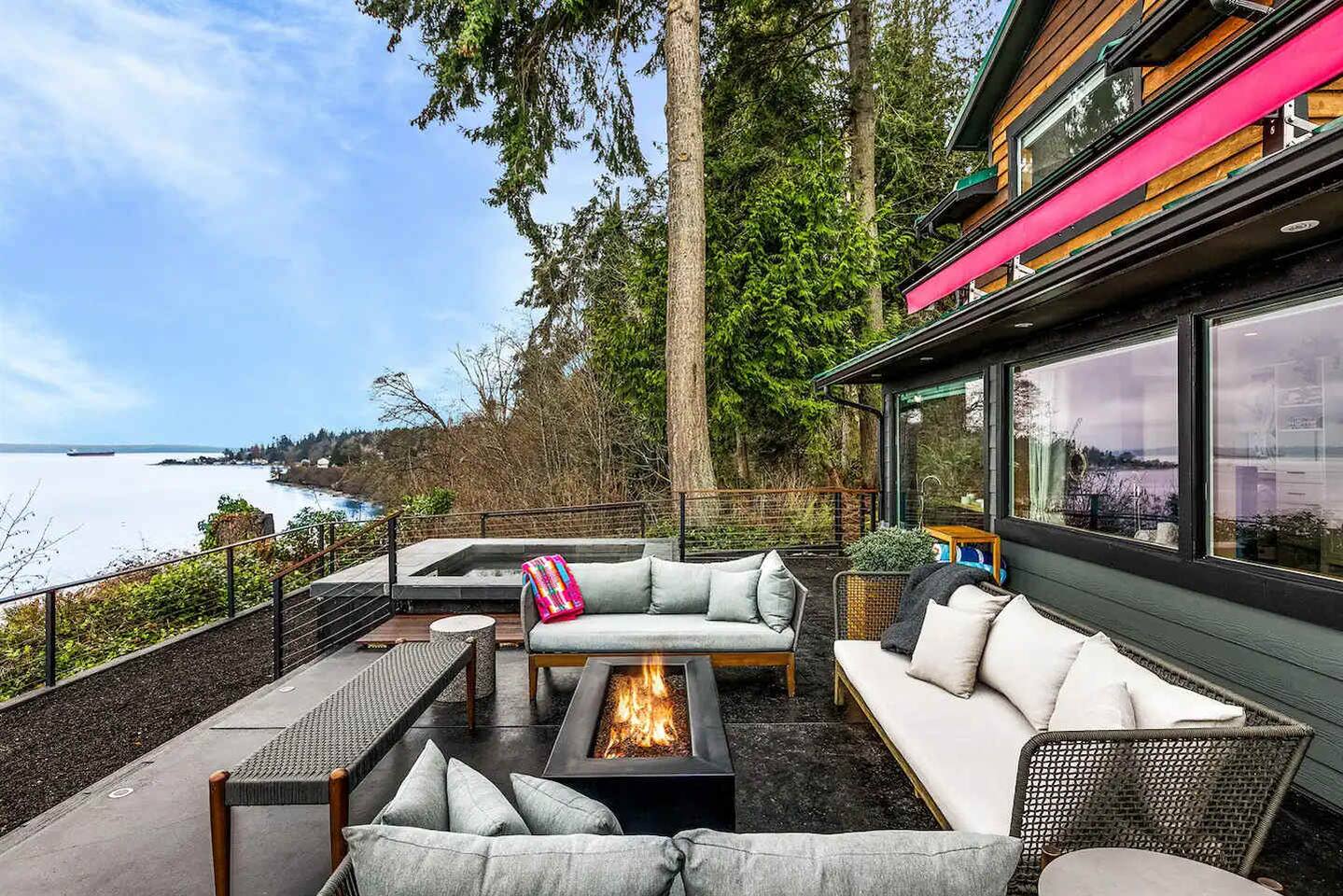 ☀ 4 exquisitely-designed bedrooms, each with a unique vibe, ocean views, and outfitted with luxurious linens ☀ Spa-like bathrooms: open-air, curb-less, rain showerheads, radiant floor heating, premium toiletries, robes and slippers, towel warmers ☀ 6-person JAPANESE SOAKING TUB with a blazing 200btu fire pit, and an extensive variety of outdoor lounge areas ☀ EXTENDABLE AWNING on the patio so you can enjoy the outdoors even when it's raining ☀ Fully-equipped kitchen with gas stove, propane BBQ grill, serving trays, and breakfast items provided ☀ PRIVATE BEACH AREA with a picnic table and direct access to the water ☀ Weekly, local, fresh flower service with fresh flowers provided throughout the home ☀ CONCIERGE : How can we make it special for your group? Boat rentals, float plane experiences, paddleboards, Chefs, Masseuse and more! SaltWood Bluff offers a vacation experience you'll never forget. This one-of-a-kind property immerses you into the rich history and culture of the Pacific Northwest. With large windows, skylights, and lots of open air, the 2,200 sq. ft. home is designed to maximize your enjoyment of the beautiful surrounding nature. Lose yourself in the breathtaking views of the Seattle skyline, Mt Rainier, Mt Baker, the Cascades, and stay entertained all day watching boat traffic, bald eagles, osprey, seals, otters, whales and so much more. If you're headed to Olympic National Park, this is the perfect home to come back to after a long day's journey into the wilderness. Calling all BIRDERS! This location is a special treat that offers vibrant birdlife right outside the back door. Kitsap county, in particular, is a birdwatcher's paradise with the likes of bald eagles, Anna's hummingbird, dark-eyed junco, great blue heron and much more whizzing right by the bluffs of the Puget Sound. Grab some binoculars and don't miss your chance to witness this thrilling sight! Some kind words from past guests... "...a bona fide treat to spend time and bask in the incredible beauty there..." "...The love and care that was poured into the home is palpable..." "...even better in person than the photos..." ☆☆ BATHROOMS ☆☆ ☀ Towel warmers and Heated floors ☀ Deep soaking tub ☀ Curbless showers ☀ Premium towels and toiletries ☀ Rainshower, handhelds, and shower jets The master bedroom features an open-air bathroom that blurs the lines between indoor and outdoor living. The space is equipped with a giant overhead rain shower, handheld jet, a custom-made marble tub, and towel warmer. No matter where you stand, you’re surrounded by tranquil blue walls and expansive windows so you can see the Puget Sound. The open bathroom in the PNW room features a sleek black vanity, marbled floors and walls, and an overhead shower with horizontal shower jets. The third bathroom ensuite is shared, featuring white subway tile, modern shower features, a towel warmer, and fresh eucalyptus so you feel like you’re at the spa. ☆☆ KITCHEN & DINING ☆☆ ☀ Fully-equipped kitchen ☀ 5-burner gas stove & 2 ovens ☀ Serving trays and utensils for the whole family ☀ Coffee, tea, eggs, and pancakes provided ☀ Complimentary grocery delivery service The gourmet kitchen is a chef’s dream, mixing modern design and retro style with all-natural woods, chrome, and stainless steel. Prepare homemade meals in the open-concept kitchen while still interacting with friends and family throughout the home. As with every other room in the house, you won’t miss any action on the water while cooking or doing the dishes, as the floor-to-ceiling glass doors let you see the Sound no matter where you’re standing. You’ll find state-of-the-art appliances, kitchen gadgets, a 6qt Instant Pot, nonstick ceramic pots and pans, silverware, glassware, and anything else you’d ever need to whip up a decadent meal for the whole group. You’ll also find a premium coffee and tea bar, farm-fresh local eggs, and pancake mix so you’ve got breakfast covered. Enjoy your meals at the elevated breakfast bar made of Sapele wood, or at the 10-seater round dining table with a lazy Susan. ☆☆ FAMILY ROOM & LIVING AREA ☆☆ ☀ 65" Smart TV with high-speed wi-fi ☀ Soft, heated, electric blankets ☀ Genuine leather sofa and sheepskin rugs ☀ Telescope and Binoculars for birdwatching and marine life ☀ Enormous windows and sliding doors to enjoy the sight and smell of the Puget Sound The main living room which overlooks the water is a calming blend of serenity and amazement. Settle into the cozy couches or relax on the cotton poof tucked under the windows. Sink your feet into the plush sheepskin carpets and keep your gaze out the window so you don’t miss a moment of the action. Modern decor and unbeatable views make this a prime place to unwind. ☆☆ OUTSIDE SPACE ☆☆ ☀ Weber propane BBQ grill, gas provided ☀ Custom-built hot tub with capacity for up to 6 people ☀ Custom-built firepit with 200,000 BTUs to keep you warm ☀ A variety of seating options including 4 chaise lounge chairs for sunbathing ☀ Kayak & Stand-up paddleboard launch The living room has a 65" Smart TV, but chances are you won’t even notice when you see all that the elegant outdoors has to offer. The back of the house faces east and contains 10 pieces of 4'x4' glass. Brew some coffee and enjoy brunch on deck during sunrise! This space has two separate outdoor sectionals, a fire pit, and an incredible hot tub overlooking the water. Bring a good book out to the back and relax in one of the chaise lounges, or use the telescope to look for birds and wildlife. Follow the walkway and staircase down to the private beach to go kayaking, paddle board, search for clams, or a simple morning stroll on the sandy shores of Kingston. ★☆ Send us a message to book your one-of-a-kind experience in Kingston, Washington! ☆★
