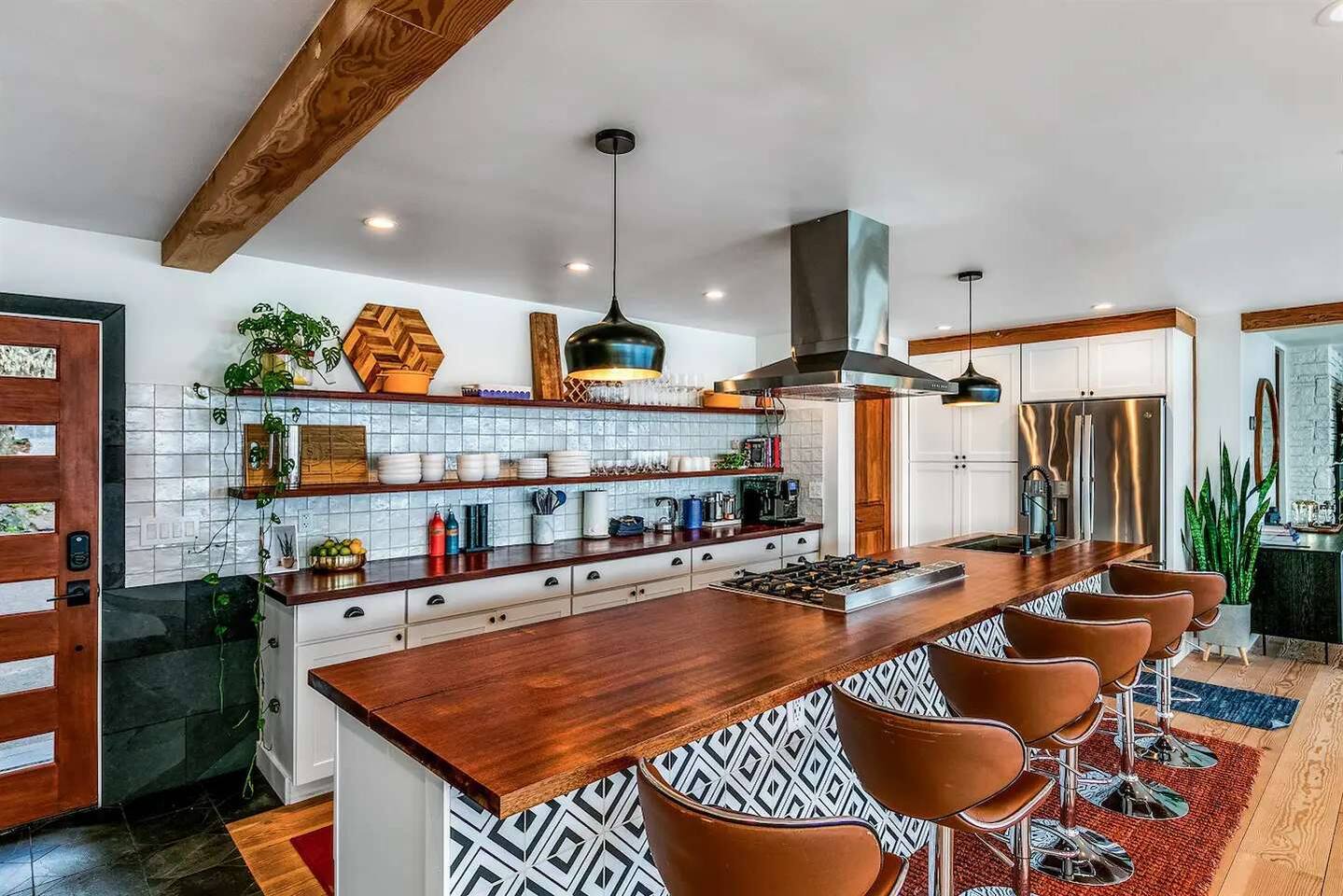 SaltWood has its own private driveway that can accommodate 6-8 cars. When you stay in this home you’ll have the entire place to yourself, all the rooms and amenities. You’ll be given a door code to access the home via smart lock. The home is equipped with everything you need for a dreamy vacation, including a full-size washer and dryer, high-speed WiFi, premium linens, a hot tub, and a BBQ. There are eight private parking spaces on the property, and you're just a short drive from local restaurants and boutiques.