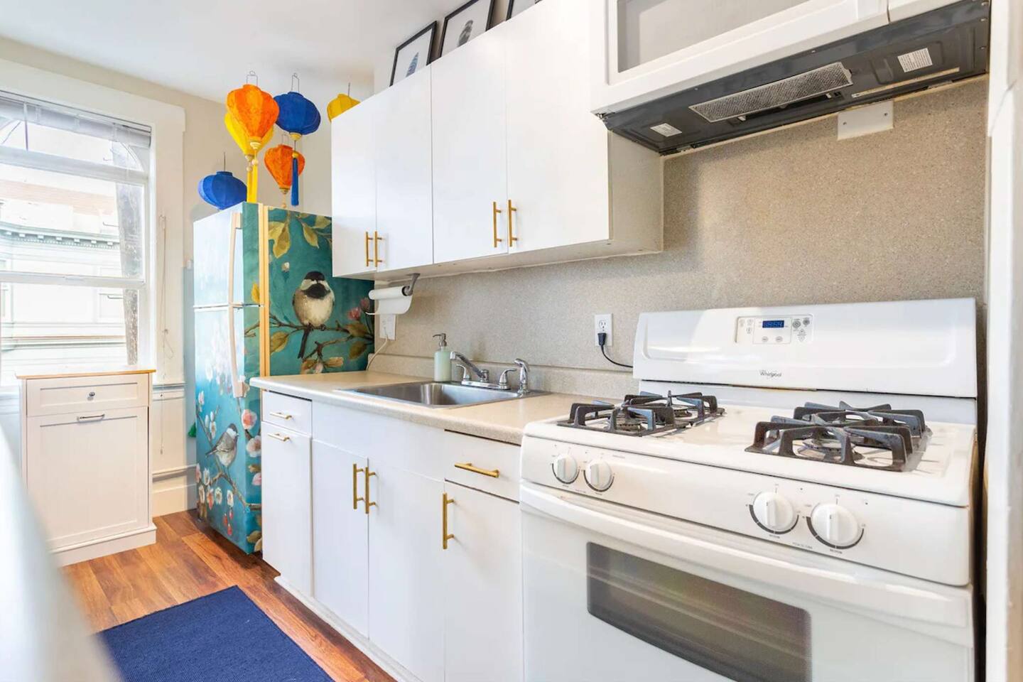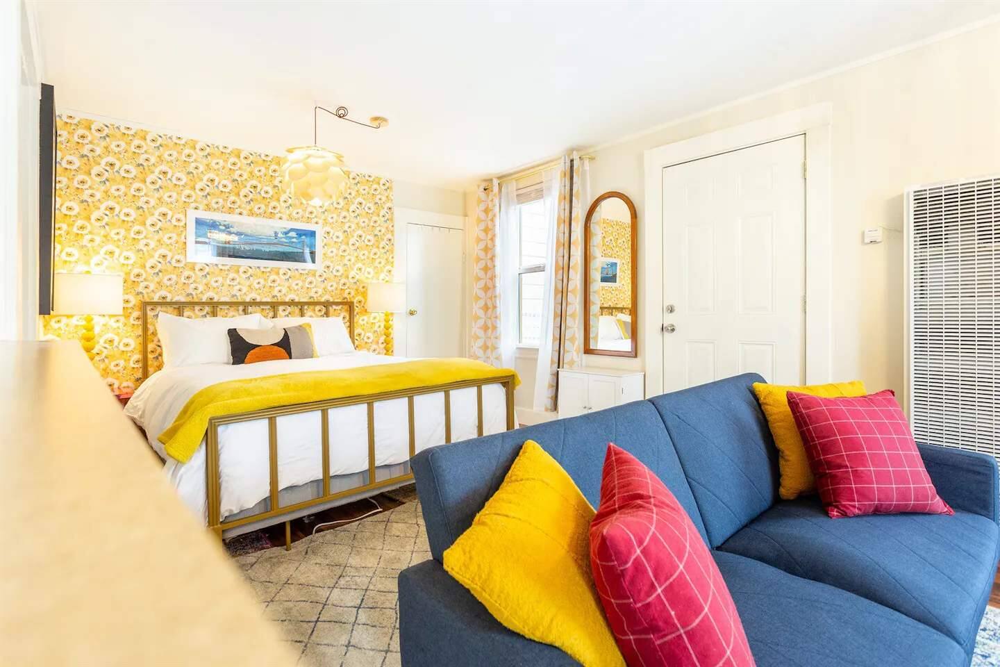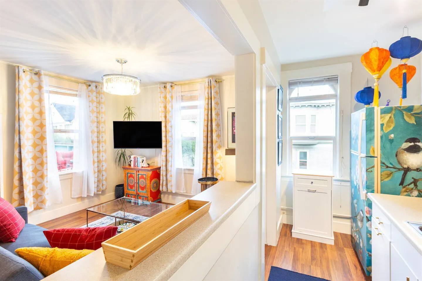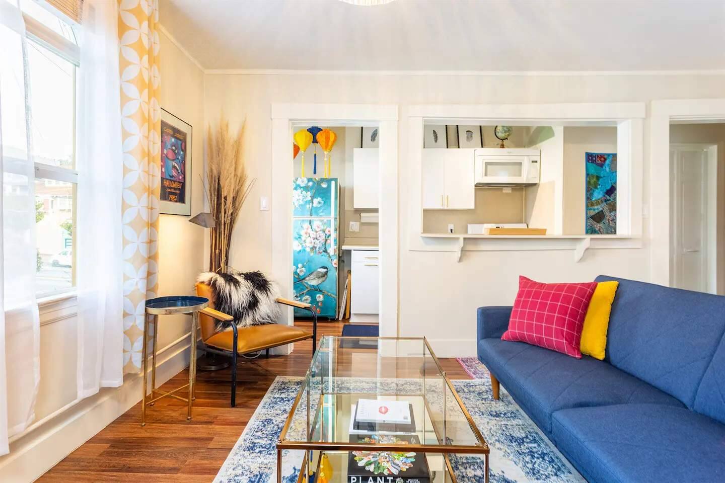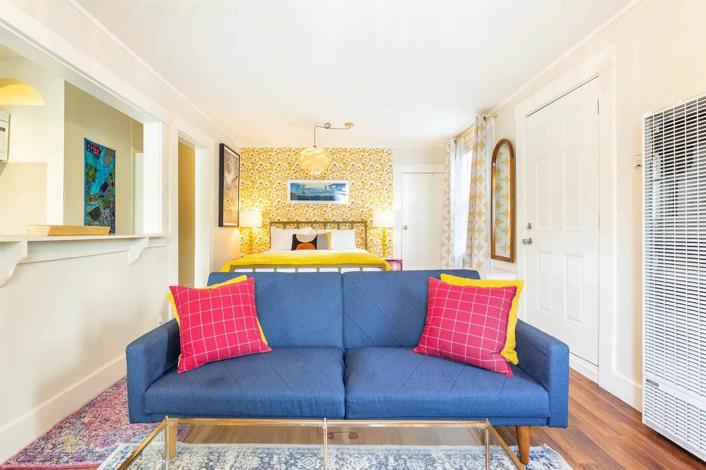 Welcome to Sutro Studio, this charming unit will inspire creatives with it's vibrant and professionally designed interior! Perfect for locals on stay-cation, vacationers, & long-term tenants. Located in Noe Valley, it's a short walk to Whole Foods, cafes, & restaurants. It offers a cozy stay with a queen bed, sofa bed, full bathroom, coffee nook, kitchen essentials, smart TV, & laundry access. Sutro is made w/ traveler convenience in mind, so you can enjoy a comfortable home away from home.